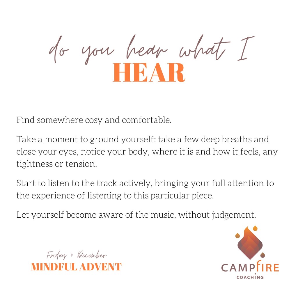 Notice which instruments you hear, the tempo and the volume. Notice how it varies and where you hear the music in your body.