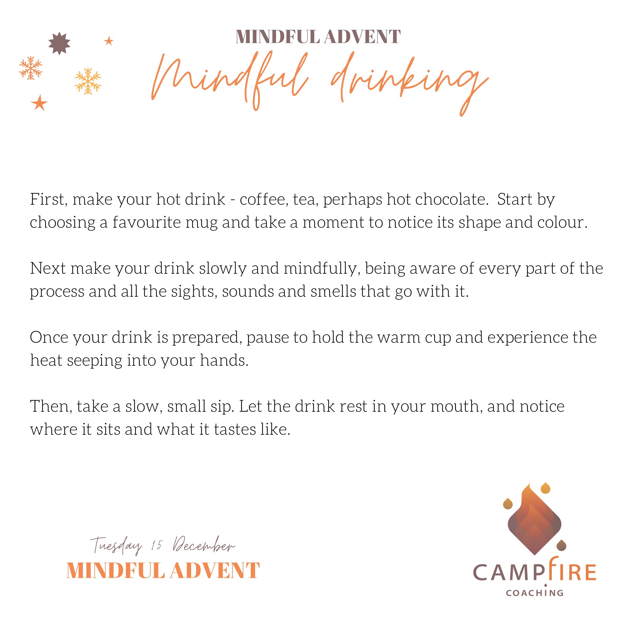 #mindfuladvent #adventcalendar #alternativeadvent #consciouschristmas #mindfulliving #selfawareness #justbreathe #bepresent #christmasoverwhelm #spreadkindness #hugthewarmth #mindfuldrinking #dailyindecember