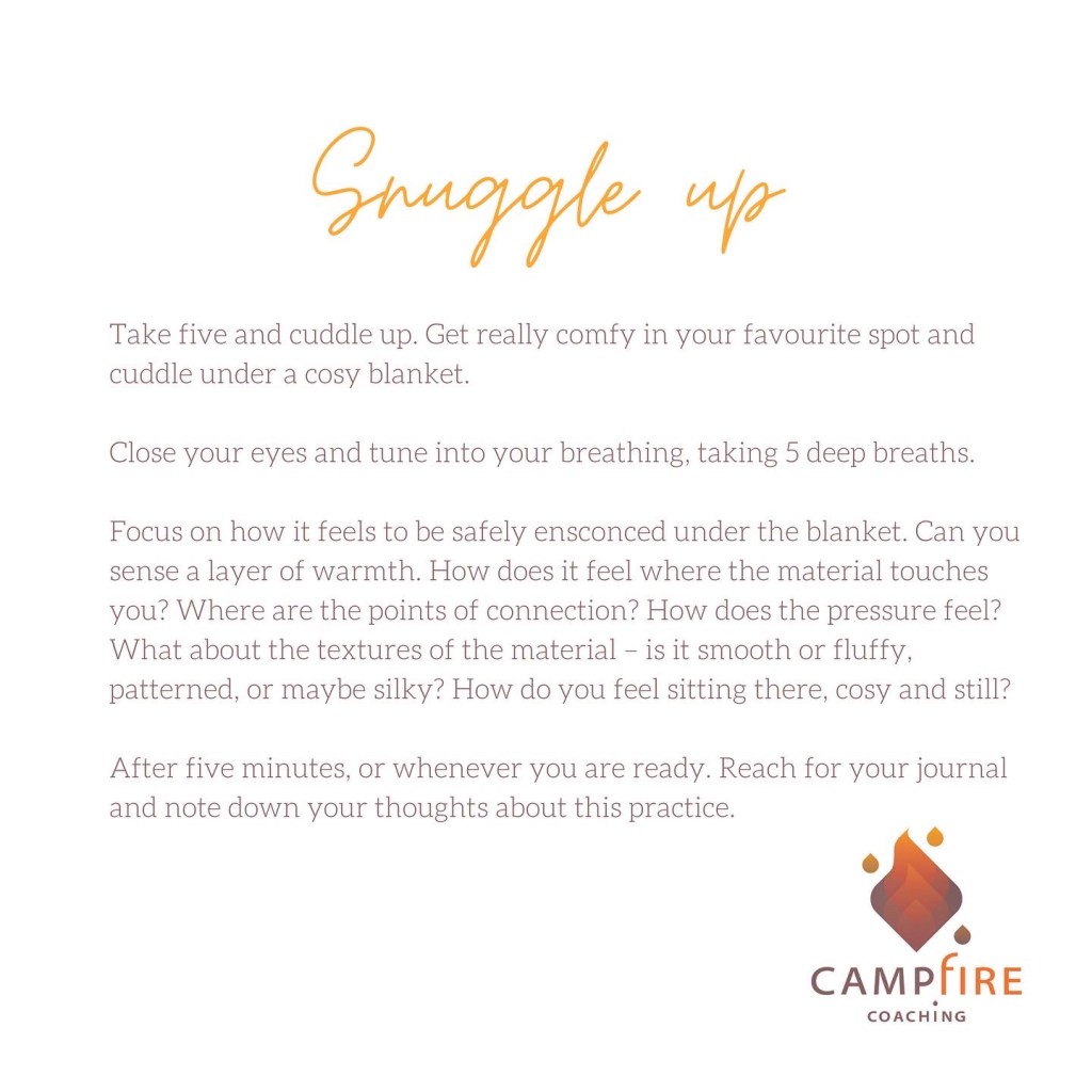 Take five and cuddle up. Get really comfy in your favourite spot and cuddle under a cosy blanket.