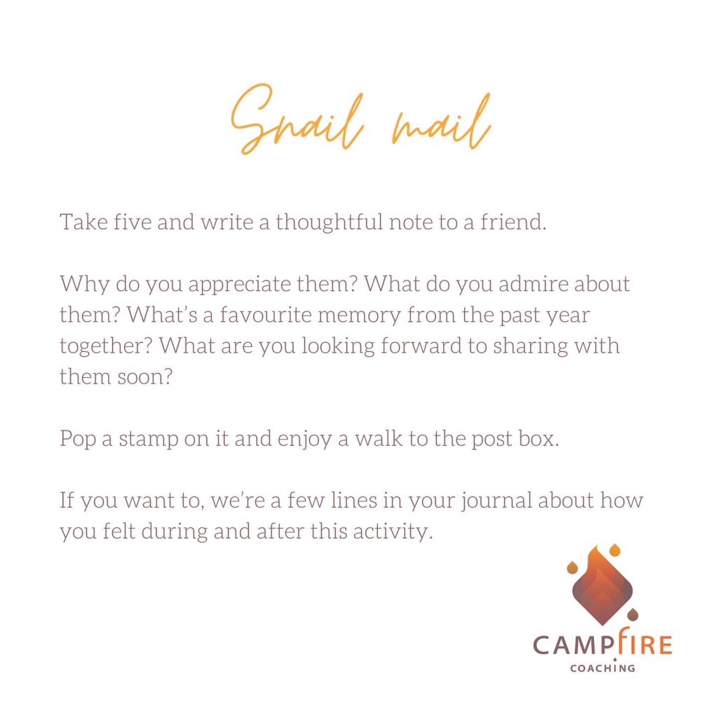 Take five and write a thoughtful note to a friend.